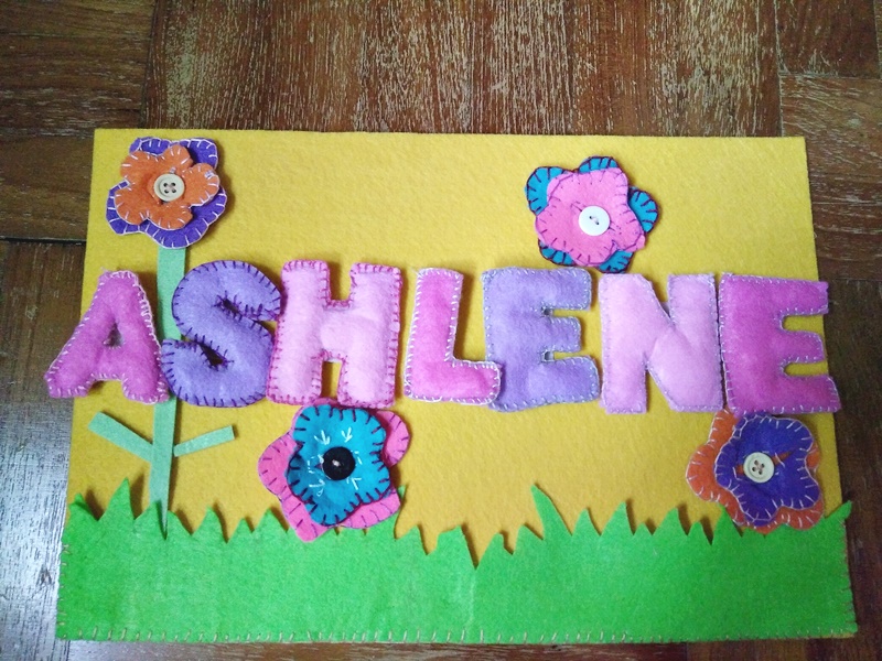 I've been looking at quiet books for a long time and kept procrastinating starting work on one. Then it dawned on me that it's time Sticky Bean learn how to spell her name. Once she learned how to spell her name then at least it's easier for her to learn how to write her name.