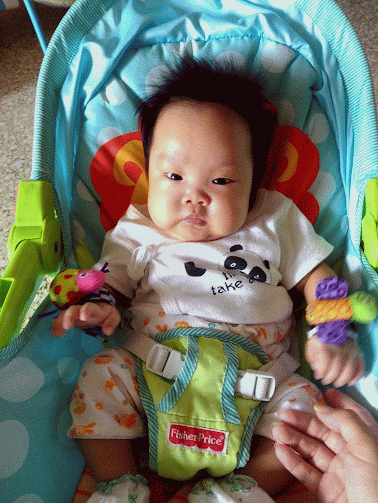 At 3 months, we decided to open up her fisher price play gym which is a gift from her god ma.